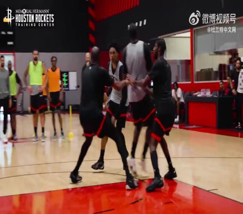 富贵险中求火箭训练:阿门单打杜兰特面对长臂干扰单手打板命中