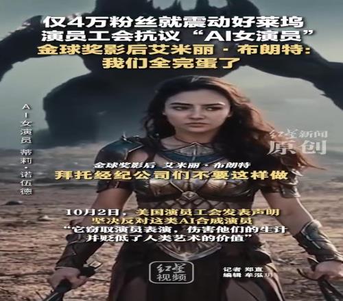 仅4万粉丝的“AI女演员”遭同行抵制演员工会、众多知名影星联手抗议